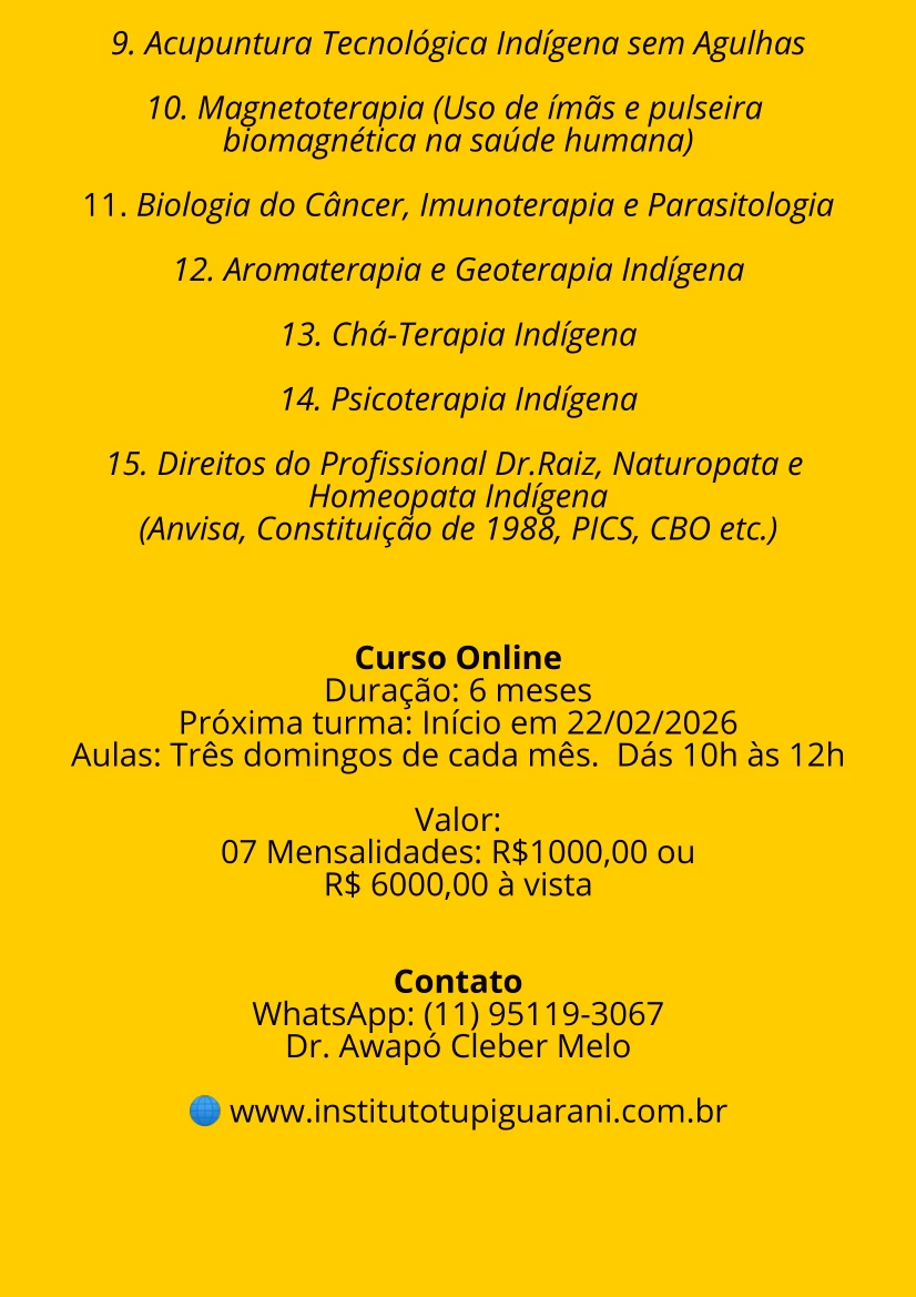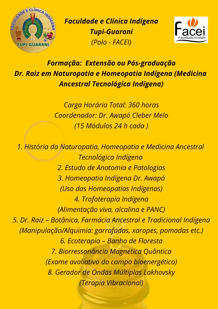 1° Dr. Raiz em Naturopatia e Homeopatia Indígena (Medicina Ancestral Tecnológica Indígena)